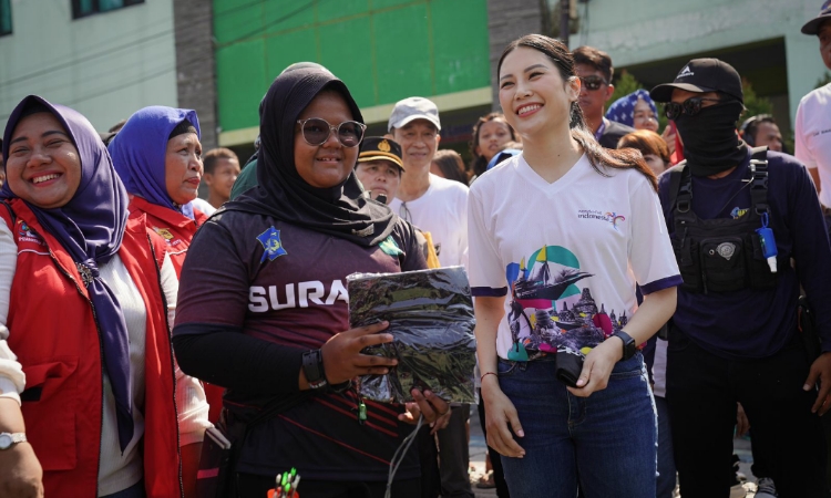 Atlet panahan junior asala Panjang Jiwo, Surabaya, Nadia Assafa Noor Ilmi menyambut kehadiran Wakil Menteri Pariwisata dan Ekonomi Kreatif, Angel Tanoesoedibjo.