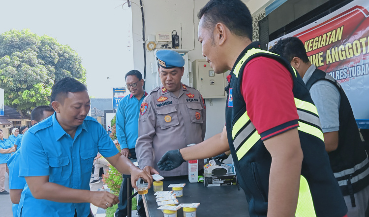 Satresnarkoba Polres Tuban menggelar tes urine dadakan terhadap anggotanya, Selasa (03/10/2023). Total 26 personel di tes urine. Hasilnya, semuanya dinyatakan negatif mengonsumsi obat-obatan terlarang.